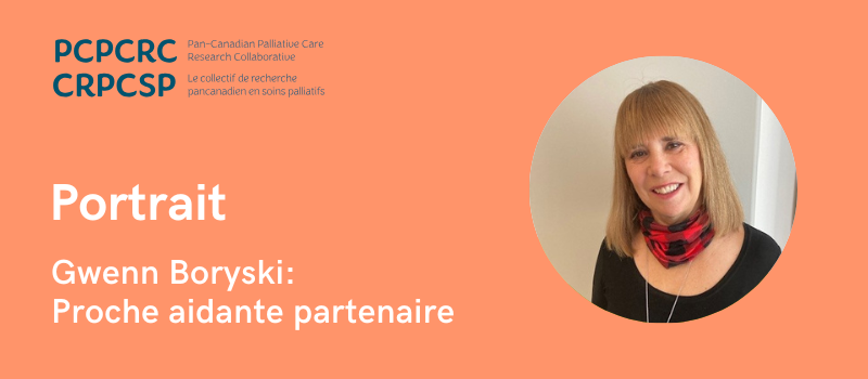 Gwenn vit à Calgary, en Alberta. Elle a commencé à faire du bénévolat auprès des Alberta Health Services (AHS) il y a près de sept ans, puis s'est jointe à un projet dirigé par une autre membre du CRPCSP, la Dre Jessica Simon. "Il s'agissait d'être la voix de la famille", explique Gwenn. Le projet consistait à mettre en œuvre la planification préalable des soins dans les unités hospitalières, et Gwenn assistait aux réunions pour s'assurer que les processus étaient acceptables pour les patients et les familles.