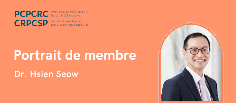 "Changer la façon dont les patients et les familles vivent un diagnostic qui change la vie", déclare le Dr Hsien Seow, membre du CRPCSP, à propos de son objectif de recherche ultime. Ses principaux intérêts de recherche portent sur l'amélioration de l'expérience du patient et de sa famille face à une maladie limitant la qualité de vie, par la mise en œuvre d'une démarche précoce de soins palliatifs.
