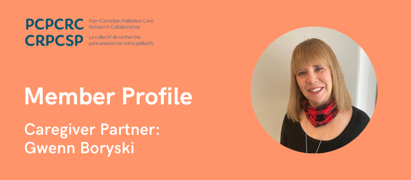 Gwenn lives in Calgary, Alberta. She began volunteering with Alberta Health Services (AHS) nearly seven years ago, eventually joining a project led by PCPCRC member Dr. Jessica Simon. “It was about being the voice of the family,” says Gwenn. The project was about implementing advance care planning on hospital units, and Gwenn would attend meetings to make sure the processes was amenable to patients and families.