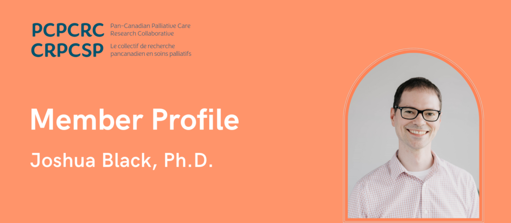 Joshua Black, Ph.D. is the Bereavement Initiative Manager at the BC Centre for Palliative Care (BCCPC) and host of the Grief Dreams Podcast. He became involved in supporting the bereaved by volunteering at a hospice following the death of his father. Black found that those bereaved individuals had many questions about their dreams, and he was “motivated to help provide them with some answers to those questions.” Wanting to take on research on dreaming of the deceased, Black returned to school. “I have found working in this space very meaningful to my life,” he says, “and the lives of others I want to continue to support.” He joined the PCPCRC upon the recommendation of his colleagues at the BCCPC, who spoke of the benefits of joining and the funding opportunities for research.