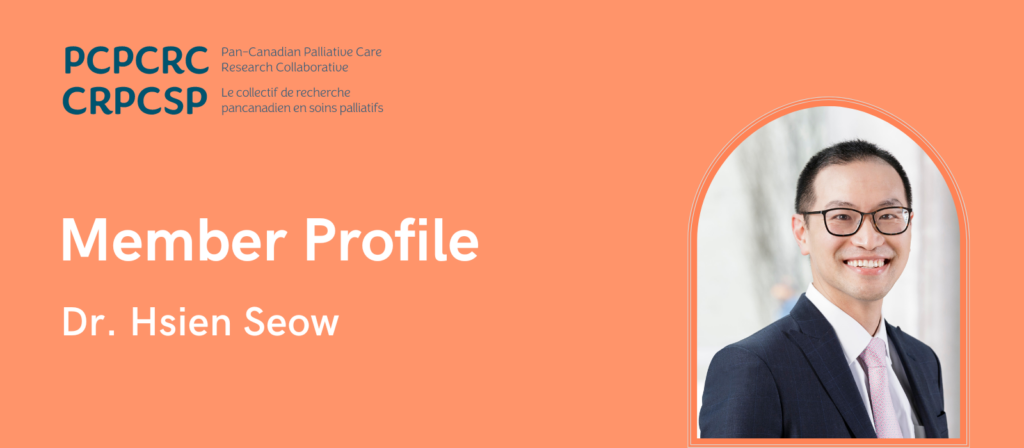 “To change the way patients and families experience a life-changing diagnosis,” says PCPCRC member Dr. Hsien Seow about his ultimate research goal. His core research interests lie in improving the patient and family experience facing a life-limiting illness by implementing an early palliative care approach.